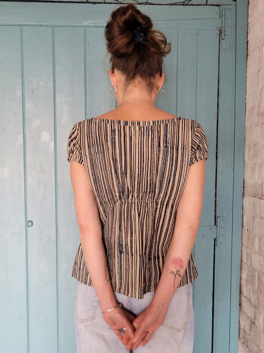 Lottie Top in blue, cream, black