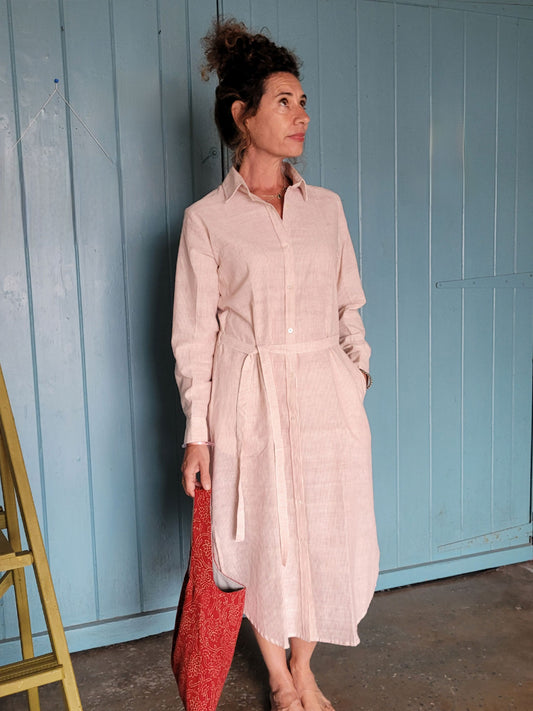 White Tallentire Shirt Dress with a fine red stripe